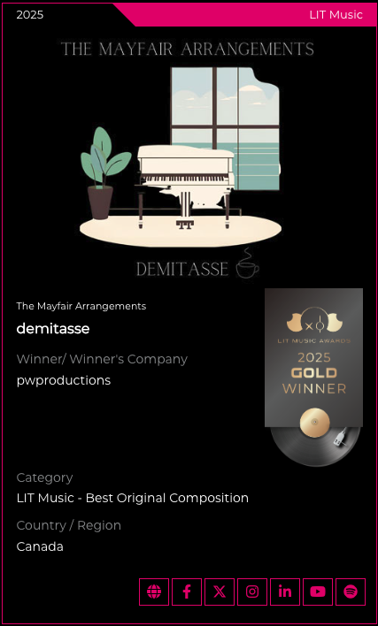 demitasse also Won Best Instrumental Song at the Clouzine International Music Awards (September 2025)