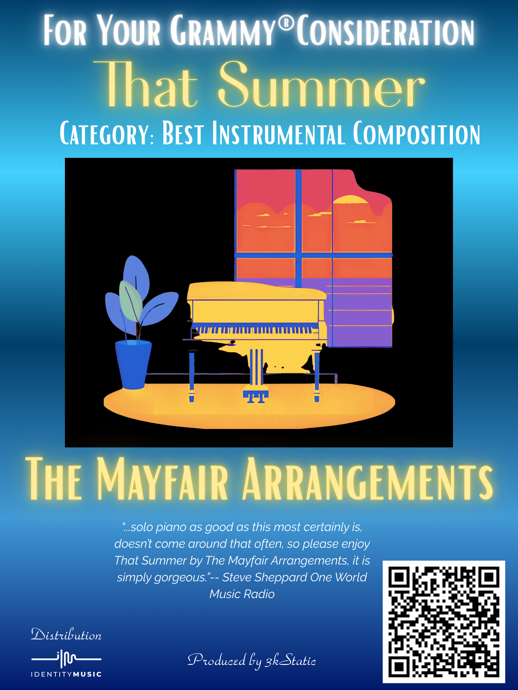 That Summer is an Instrumental Piano composition that was just released this past July & takes you through the different phases of a cherished summer romance, The piece starts slow, gentle, and lyrical, like the beginnings of a fresh new relationship. This leads into the frantic stage of intense feelings, where the music also intensifies in speed and dynamics. From here, the relationship explores possible commitment. The music is tentative, hopeful, but at the same time, there is the realization that this encounter, is probably just going to be a tender summer memory. There are gentle ambient layers throughout, including a distant, ethereal choir, and light synths. Producer Multi-Grammy Candidate 3kStatic.